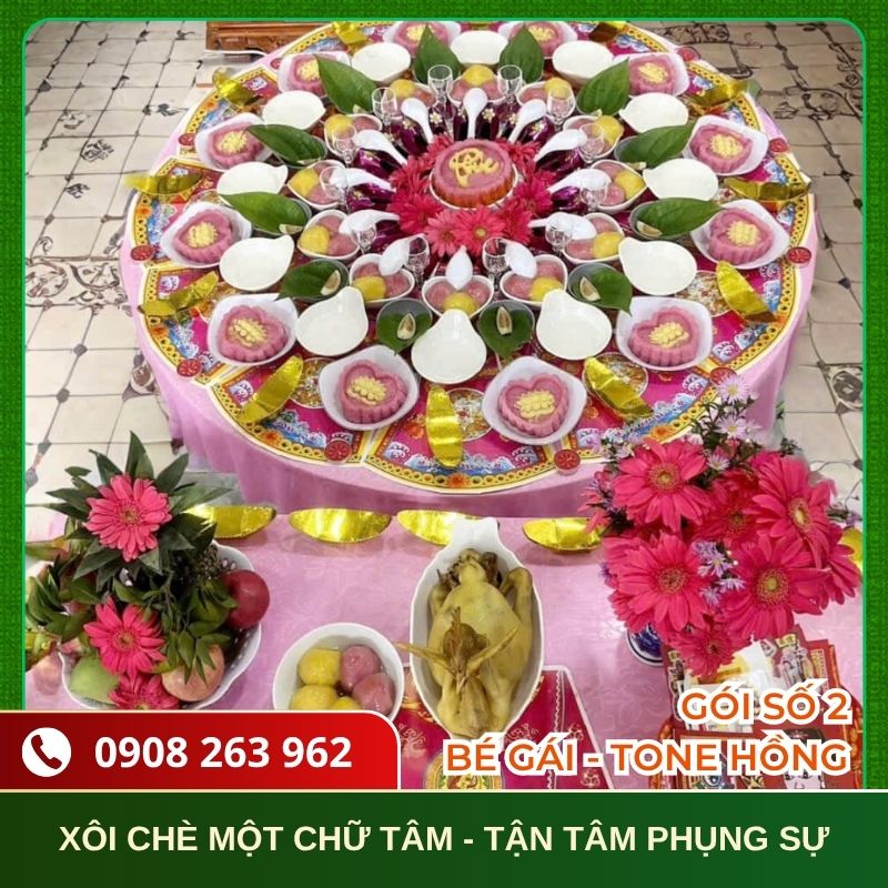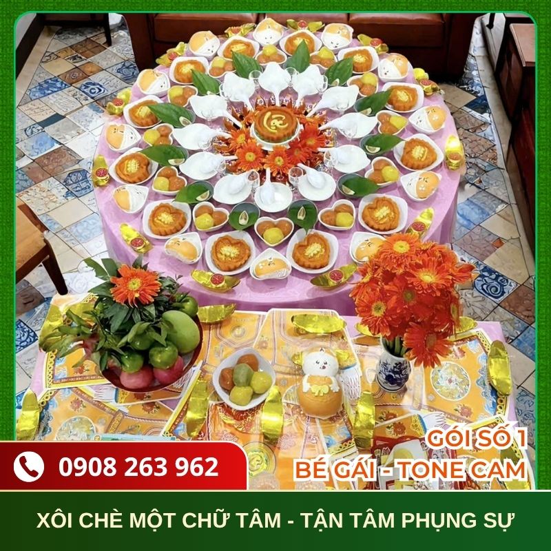 Một số hình ảnh thực tế mâm cúng đầy tháng bé gái tại Xôi Chè Một Chữ Tâm