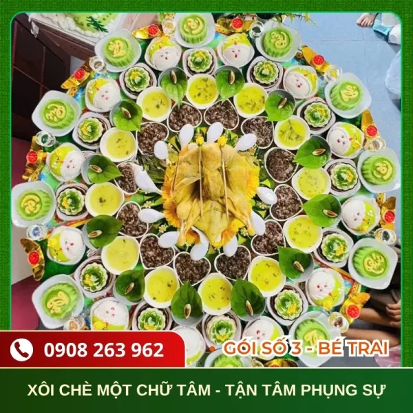 Một số hình ảnh thực tế mâm cúng thôi nôi bé trai tại Xôi Chè Một Chữ Tâm