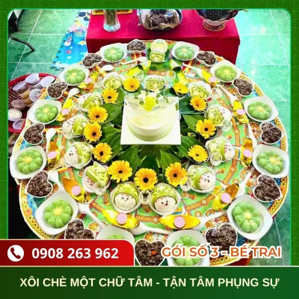 Xôi Chè Một Chữ Tâm ra đời với sứ mệnh mang đến cho gia đình bạn một buổi lễ thôi nôi bé trai trọn vẹn, ý nghĩa và hoàn hảo nhất, không cần lo toan, không cần vất vả. Chúng tôi sẽ biến gánh nặng thành niềm vui, giúp bạn an tâm tận hưởng từng khoảnh khắc đáng nhớ bên con yêu.